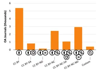 Les auteurs qui souhaitent rendre leur travail librement accessible ont un certain nombre de possibilités. Une des options est de publier dans une revue en libre accès (« gold OA » ou voie dorée)[52]. Pour trouver ces revues, il est possible d'utiliser le Directory of Open Access Journals[53] DOAJ. Le DOAJ est loin d'être complet à cause du temps nécessaire au processus de vérification de la qualité de la revue ; il recense néanmoins plus de 10 000 revues en 2015.
