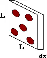 On considère un faisceau de particules projetées vers une cible, ainsi qu'une tranche infinitésimale de cette cible (Figure 1). Les atomes (ou autres particules) susceptibles d'arrêter des particules du faisceau sont en rouge. La grandeur du libre parcours moyen dépend des caractéristiques du système auquel la particule appartient :