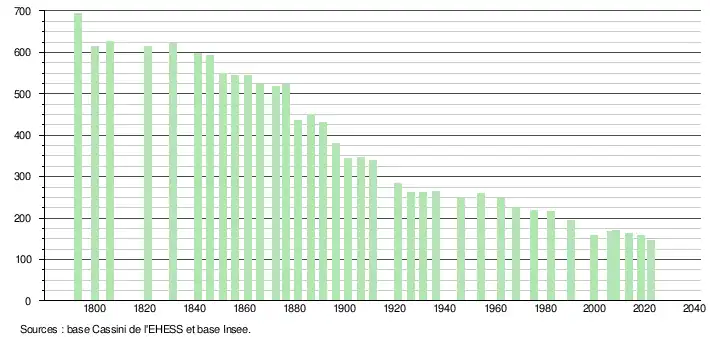 - ↑ Population municipale de référence en vigueur au 1er janvier 2025, millésimée 2022, définie dans les limites territoriales en vigueur au 1er janvier 2024, date de référence statistique : 1er janvier 2022.
