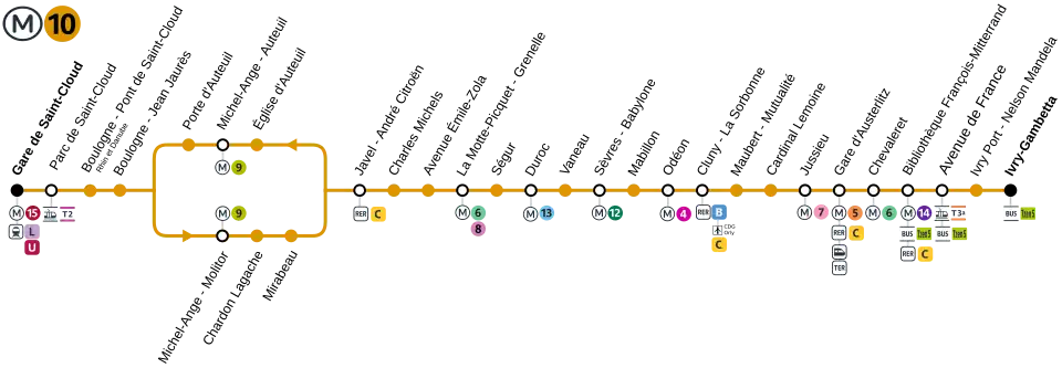 | Terminus | Boulogne - Pont de Saint-Cloud Gare d'Austerlitz |