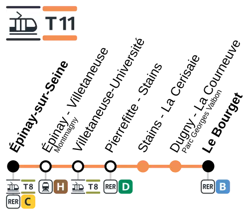 | Communes desservies | 9 Épinay-sur-Seine Montmagny Villetaneuse Pierrefitte-sur-Seine Stains Dugny La Courneuve Le Bourget Drancy |