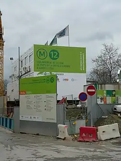 - ↑ « Prolongement de la ligne 12. Opération « première pierre » pour le prolongement de la ligne 12, le 25 juin 2008 », Direction régionale de l’Equipement d'Île-de-France, (consulté le ).