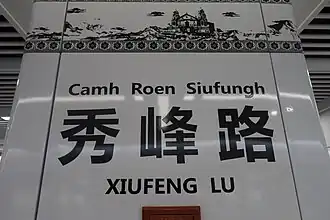 | 秀峰路站 (Xiùfēng lù zhàn) | Roen Siufungh | Rue Xiufeng (Xiufeng Lu) | ![]() | |||