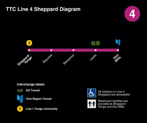 La ligne 4 Sheppard, est la plus récente et la plus courte du métro de Toronto, entre la station Sheppard-Yonge (sur la ligne 1 Yonge-University) et Don Mills. Cette ligne est la seule qui soit entièrement souterraine.