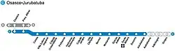 La ligne a son début situé à la jonction avec la ligne 8 de la CPTM dans la municipalité d'Osasco, où elle a deux gares : Osasco et Presidente Altino. Dès lors, les autres stations se trouvent dans la capitale de São Paulo. Après le pont Nova Fepasa sur la Marginal Pinheiros et la Pinheiros, la ligne longe la rivière pratiquement tout au long de son cours (de Ceasa à Santo Amaro) et la Jurubatuba (entre Santo Amaro et Jurubatuba), en s'en éloignant à partir du moment où elle fait le contour à côté de la décharge sanitaire de Piratininga pour accéder au pont qui traverse la rivière Jurubatuba. Après avoir traversé la rivière, la ligne continue vers le sud à travers l'ancienne voie ferrée qui atteignait la côte de São Paulo, via la gare d'Evangelista de Souza. Dans ce tronçon, la ligne atteint le quartier de Grajaú, où le point final de la ligne est situé au terminus intermodal de Grajaú. Une fois les travaux d'extension terminés, l'extrémité de la ligne passera à la gare de Varginha, à 4,5 km au sud.