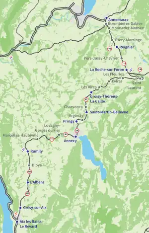 | Villes desservies | Aix-les-Bains, Rumilly, Annecy, La Roche-sur-Foron, Annemasse | |