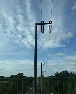 La ligne électrique de traction entre les sous-stations de Leer et d'Emden est montée sur les pylônes de la ligne aérienne sur toute sa longueur, ce qui n'est par ailleurs courant que sur les trains S-Bahn à courant alternatif. À l'est d'Emden, la ligne Emsland croise le câble HVDC BorWin1[17].