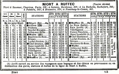 4. 1 2 V. P., « Ligne de Niort à Ruffec », La Vie du Rail, no 1225, , p. 2.
