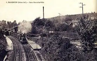 La gare de Barentin-Ville atteinte depuis celle de Barentin-Embranchement au moyen d'un triple rebroussement. | |