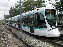 Depuis le , la plate-forme de la ligne est empruntée quotidiennement par les rames de la ligne 2 du tramway d'Île-de-France, plus souvent simplement nommée T2. Une courte section de cette plate-forme est occupée depuis 2006 par le parc nautique départemental de l'île Monsieur, le tramway faisant désormais un détour. Exploitée par la Régie autonome des transports parisiens, la ligne T2 relie aujourd'hui le pont de Bezons à la porte de Versailles en desservant vingt-quatre stations dont une située au cœur du quartier d'affaires de La Défense, pour une longueur totale de 17,8 kilomètres. Contrairement aux lignes T1 et T3a[15] qui sont implantées en site propre pris sur la voirie, axial ou latéral, la ligne T2, également en site propre, est implantée hors de la voirie entre les stations La Défense et Suzanne Lenglen, sur l'emprise de l'ancienne ligne des Moulineaux. Cette particularité, qui limite les interfaces avec le trafic routier, permet à la ligne d'avoir une vitesse commerciale supérieure à celle des autres lignes de tramway franciliennes.