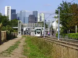 - ↑ « Décret du 31 mai 1994 déclarant d'utilité publique et urgents les travaux relatifs à la réalisation de la liaison dite « Tram Val-de-Seine » entre les gares d'Issy-Plaine et de La Défense : NOR: EQUT9400761D », Journal officiel de la République Française, Paris, Imprimerie Nationale, no 130, , p. 8187 - 8188 (lire en ligne)