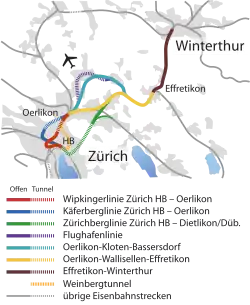 Il est prévu de construire un tunnel pour supprimer le goulet d'étranglement entre Effretikon et Winterthour. Le tunnel de Brütten irait de Bassersdorf à Winterthour. En raison de la longue période de construction prévue et des coûts élevés, une proposition de mise à quatre voies de la ligne existante a été examinée[3]. Un projet similaire à celui du tunnel de Brütten a été proposé comme initiative populaire par l'Association transports et environnement, à Zurich, mais il a été rejeté par les électeurs du canton de Zurich le 26 septembre 2010, avec 70 % de voix contre.[réf. nécessaire]