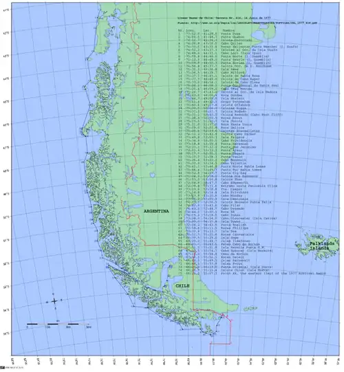 Lignes de base au sud du Chili.