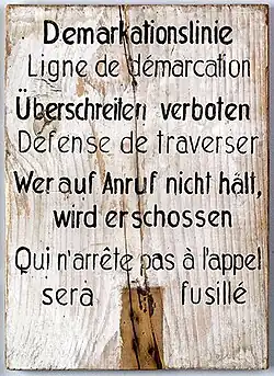 Il existe dans différentes communes quelques panneaux marquant le passage de la ligne de démarcation.