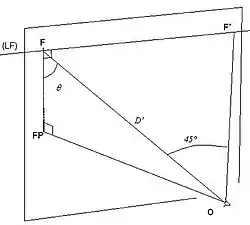 Le fait que FF' soit égal à FO résulte de ce que le triangle FF'O est rectangle et possède un angle de 45° Il est donc rectangle isocèle. (voir figure de droite).