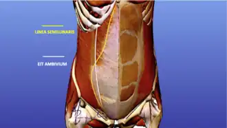 La ligne semi-lunaire peut être le siège d'une hernie dite hernie de Spiegel souvent au niveau de la jonction entre le muscle transverse et cette ligne.