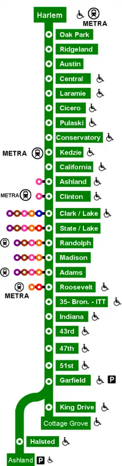 | Terminus | Harlem/Lake–Cottage Grove/Ashland/63rd |