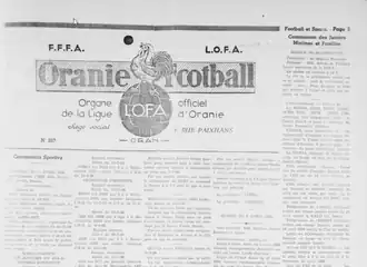 - ↑ « F.F.F.A. Ligue régionale de l'Oranie », L'Écho d'Oran, vol. 77, no 17.959, , p. 3 (lire en ligne).