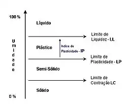 La consistance d'un sol fin (exemple : le sable) ou cohérent (exemple : l'argile) peut être appréciée par un essai de résistance mécanique (essai de rupture en compression simple, essai de poinçonnement ou de pénétration). Cette consistance varie considérablement avec la teneur en eau du sol. En faisant décroître progressivement la teneur en eau d'un échantillon de sol on constate que le sol passe successivement par plusieurs états: