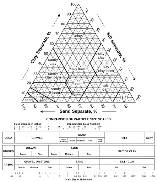 - ↑ « Particle Size (618.43) » [archive du ], National Soil Survey Handbook Part 618 (42-55) Soil Properties and Qualities, United States Department of Agriculture - Natural Resource Conservation Service (consulté le )
