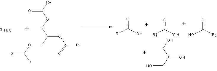 Les lipases ont une activité d'hydrolyse des esters. En présence d'eau, les esters triglycéridiques sont transformés en acide gras via la réaction :