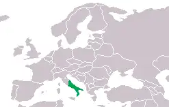 Cette espèce est endémique d'Italie. Elle se rencontre du niveau de la mer à 2 000 m d'altitude en Marches, en Abruzzes, en Molise, au Latium, en Campanie, en Pouilles, en Basilicate et en Calabre[1].