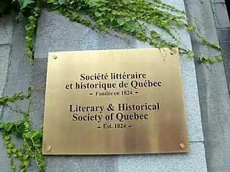 La Literary and Historical Society of Quebec est la plus ancienne société savante au Canada. Elle a à ce titre ouvert la voie à de nombreuses autres sociétés. La bibliothèque a conservé son cachet d'origine ainsi que sa collection de documents et de livres anciens, et quelques objets notables tel le bureau de Georges-Étienne Cartier.