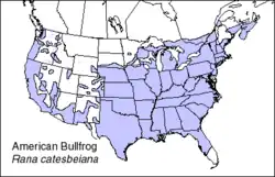 Lithobates catesbeianus est originaire de la côte est des États-Unis, de la frontière mexicaine à la région des Grands Lacs, ainsi que du sud-est du Canada[1]. L'espèce est aussi présente dans le Midwest.