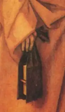 Un « livre de ceinture » (ou « livre en aumônière[N 1] » ; (en) Girdle book ; (de) Beutelbuch) est un petit livre portable adopté par les moines, les membres du clergé ou de l'aristocratie européens du Moyen Âge, qui fut un accessoire populaire de l'habit médiéval entre les XIIIe et XVIe siècles[2]. Il consiste en un livre dont la reliure de cuir, rappelant l'aumônière médiévale, pend sous la couverture du livre en une longue langue effilée avec un nœud au bout qui pouvait être glissé dans la gaine ou la ceinture de quelqu'un. Le nœud était en général fait de bandes de cuir tissées ensemble pour plus de durabilité. Le livre pendait à l'envers et en arrière afin de pouvoir le ramener à soi dans le bon sens pour le lire. Le livre était le plus souvent de thème religieux : l'office journalier d'un clerc (bréviaire) ou, pour les laïcs et en particulier pour les femmes, un livre d'heures. L'un des textes les plus répandus parmi les livres de ceintures est la Consolation de Philosophie de Boèce, bien qu'il ne s'agisse en fait que du seul livre de ceinture de philosophie ou de théologie qui nous soit parvenu. Les femmes portaient surtout des livres de ceintures par convenance car, au-dessus de la ceinture, ils étaient à la mode au XVe siècle[3]. Un livre sécurisé dans une ceinture permettait deux fonctions : permettre de le porter tout en ayant les mains libres et le protéger contre les éléments extérieurs. C'était aussi un signe extérieur de bonne position sociale et d'éducation (être un « lettré », savoir lire et écrire)[4]. Dans l'iconographie, les figures d'autorité, les saints (comme saint Jérôme) ou les apôtres, sont souvent représentés portant un livre de ceinture[5].