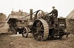 Automotrice Wallis & Steevens animant une batteuse Marshall.