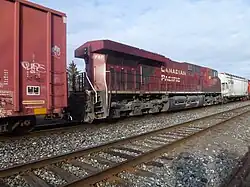 Une locomotive en milieu de train contrôlée à distance via Locotrol depuis la locomotive de tête, ce qui signifie qu'aucun personnel de conduite n'est nécessaire sur cette locomotive.