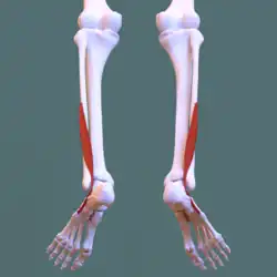 Muscle court fibulaire | Deux tiers inférieurs de la face latérale de la fibula | Tubérosité du cinquième os métatarsien |