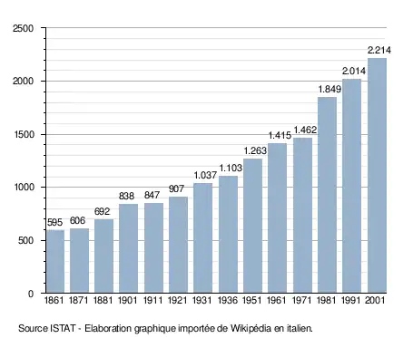 - ↑ (it) Popolazione residente e bilancio demografico sur le site de l'ISTAT.