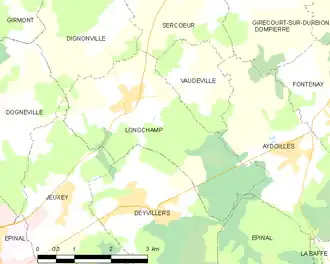 - ↑ « Orthodromie entre Longchamp et Dogneville », sur fr.distance.to (consulté le ).
