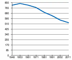 | 808 | 836 | 811 | 769 | 693 | 641 | 571[2] | 529[1] |