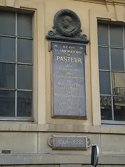 À l'École normale supérieure, où règne l'esprit républicain, Pasteur, proche de Napoléon III, est contesté tant par ses collègues que par les élèves[23], ce qui le pousse à démissionner, en 1867, de ses fonctions d'administrateur. Il reçoit une chaire en Sorbonne et on crée, à l'École normale même, un laboratoire de chimie physiologique dont la direction lui est confiée.