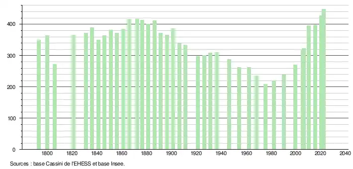 - ↑ Fiches Insee - Populations de référence de la commune pour les années 2006, 2007, 2008, 2009, 2010, 2011, 2012, 2013, 2014, 2015, 2016, 2017, 2018, 2019, 2020, 2021 et 2022.