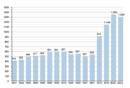 - Sources:INS, Rem:1831 jusqu'en 1970=recensements, 1976= nombre d'habitants au 31 décembre