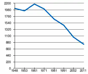 | 2 020 | 1 944 | 2 176 | 2 004 | 1 664 | 1 452 | 1 052[2] | 814[1] |