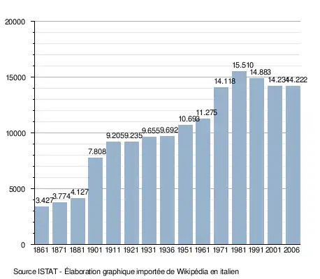 - ↑ (it) Popolazione residente e bilancio demografico sur le site de l'ISTAT.