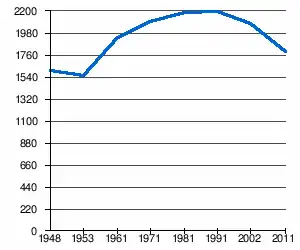 - 1 2 (sr + en) « Livre 20 : Vue d'ensemble comparative de la population en 1948, 1953, 1961, 1971, 1981, 1991, 2002 et 2011, données par localités) » [PDF], pages du recensement de 2011 en Serbie - Institut de statistique de la république de Serbie, (consulté le )