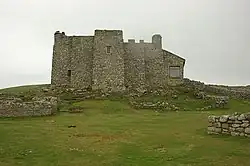 Au centre, on peut voir les vestiges d'anciennes carrières de granit.