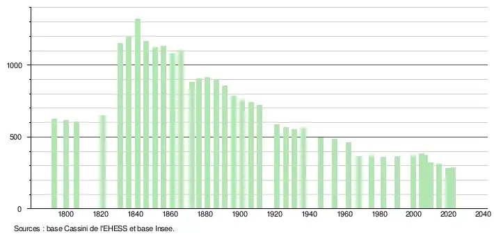 - ↑ Fiches Insee - Populations de référence de la commune pour les années 2006, 2007, 2008, 2009, 2010, 2011, 2012, 2013, 2014, 2015, 2016, 2017, 2018, 2019, 2020, 2021 et 2022.