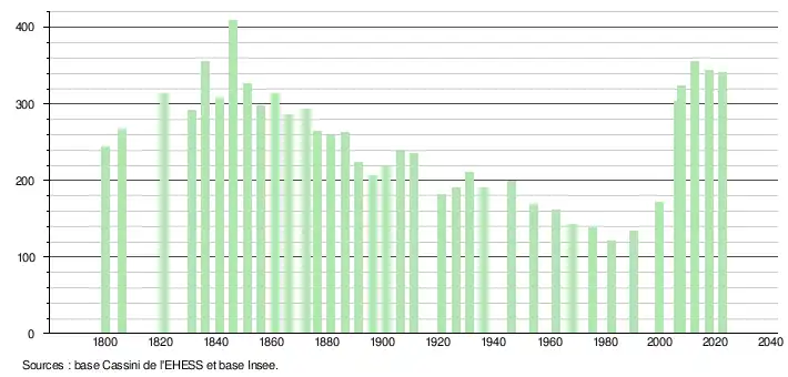- ↑ Population municipale de référence en vigueur au 1er janvier 2025, millésimée 2022, définie dans les limites territoriales en vigueur au 1er janvier 2024, date de référence statistique : 1er janvier 2022.