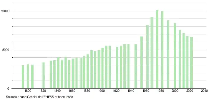 - ↑ Fiches Insee - Populations de référence de la commune pour les années 2006, 2007, 2008, 2009, 2010, 2011, 2012, 2013, 2014, 2015, 2016, 2017, 2018, 2019, 2020, 2021 et 2022.