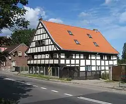 Le bâtiment est un exemple typique de l'architecture des colons hollandais dans la région du Dantzig Werder (en polonais : Żuławy Gdańskie). Il y avait autrefois une taverne de village dans le bâtiment.
