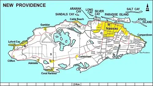 - ↑ Edward Stanford 1901 atlas page: Bahamas, with New Providence Island inset