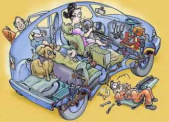 Formée d'un châssis équipé de quatre roues et d'une carrosserie qui constituent un habitacle fermé muni de sièges, l'automobile permet le transport de personnes en position assise.