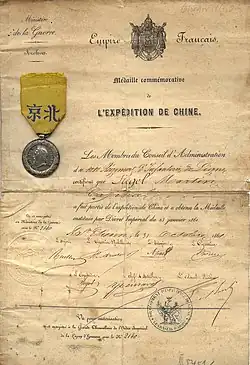C'est pour commémorer cette dernière intervention que fut créée la médaille commémorative de l'expédition de Chine, par un décret du .