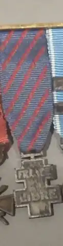 - (en) Avers et revers de la médaille ; sur le ruban - port non réglementaire - est agrafé l'insigne des Forces françaises de l'intérieur.